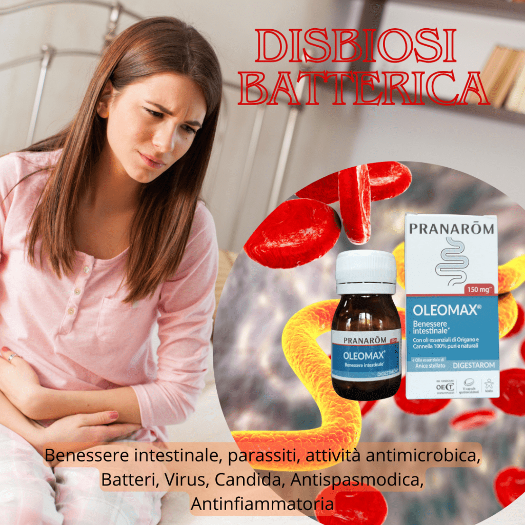 - Disbiosi, uno squilibrio della microflora naturale dell’organismo: eccesso di batteri nocivi nell’intestino e deficienza di quelli positivi (probiotici).