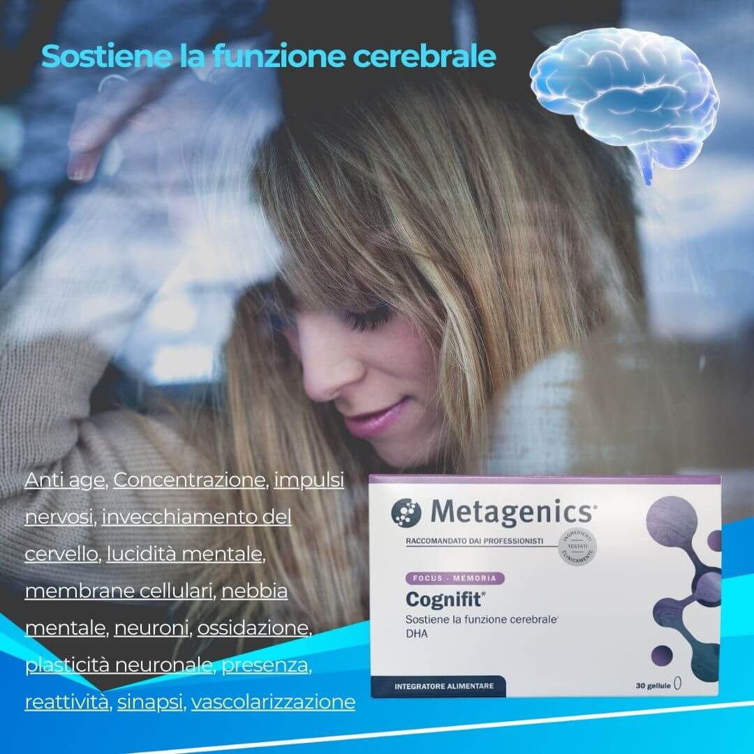 CogniFit® contiene DHA che contribuisce al mantenimento della normale funzione cerebrale. L’effetto benefico si ottiene con l’assunzione giornaliera di 250 mg di DHA. Cognifit® contiene estratti di curcuma e ginkgo che sostiene la memoria e funzioni cognitive. Le vitamine B1, B6 e B12 e il folato contribuiscono al normale funzionamento del sistema nervoso.