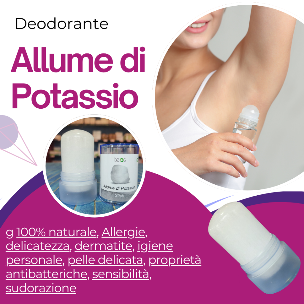 100% naturale indicato nelle allergiedelicatezzadeodoranteDeodorante, dermatite, igiene personaleintimità, pelle delicatasensibilitàsenza alluminiosudorazione. Grazie alle sue naturali proprietà antibatteriche, l’allume di potassio è più di un deodorante è un antiodorante, regola la traspirazione in maniera naturale, creando un ambiente ostile alla proliferazione dei batteri.