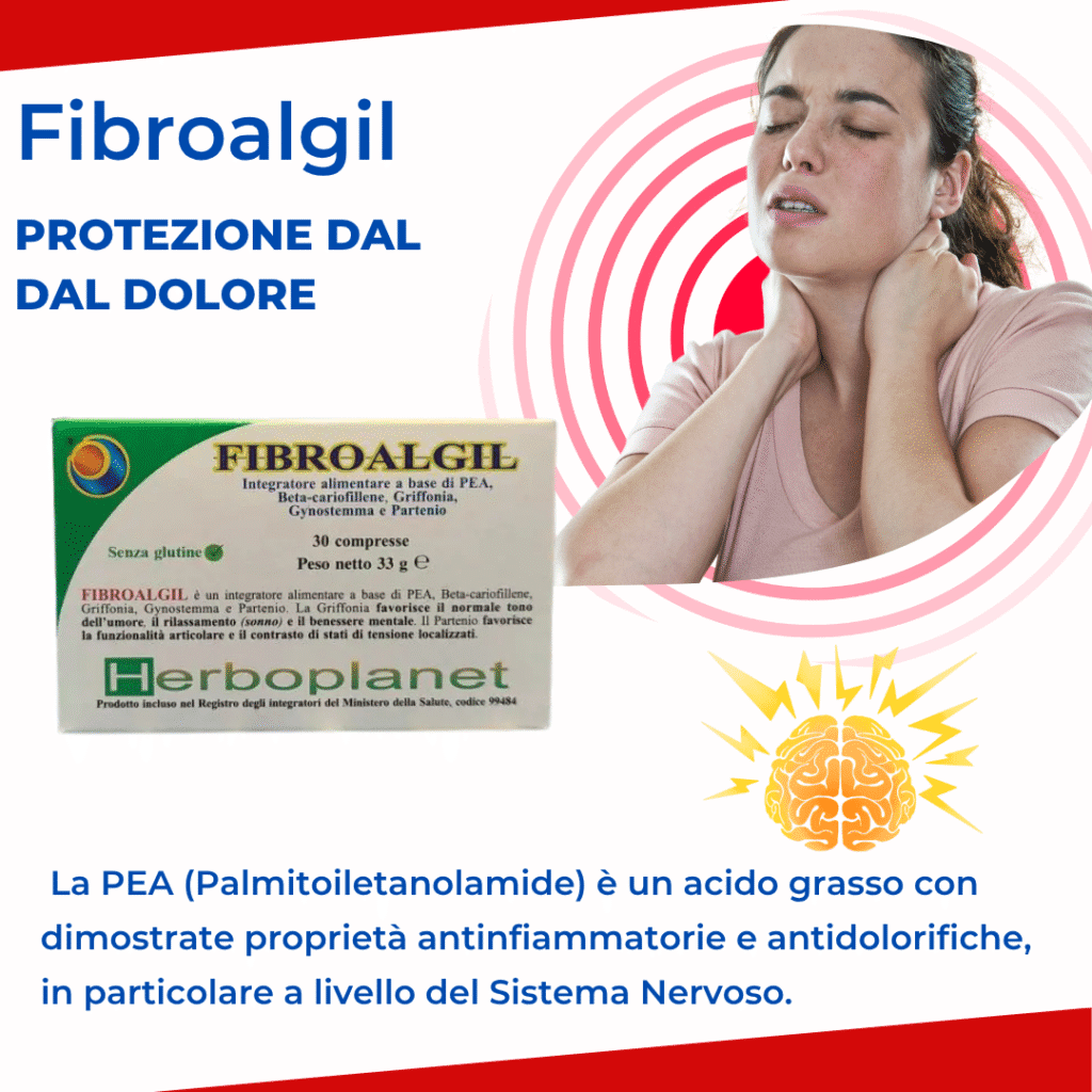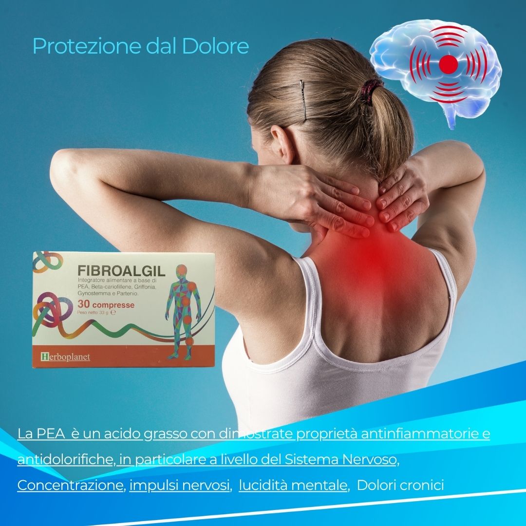 La PEA (Palmitoiletanolamide) è un acido grasso con dimostrate proprietà antinfiammatorie e antidolorifiche, in particolare a livello del Sistema Nervoso.