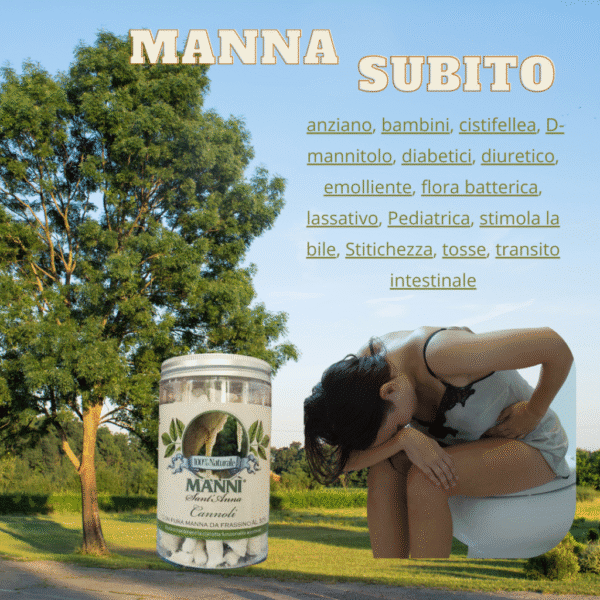 Nel XVI secolo lโ€™illustre medico Mattioli la considerava la saliva o lโ€™escremento di un astro. La โ€œmanna in lacrimeโ€ era venduta dagli speziali e prescritta come blando purgante, molto raccomandato ad anziani e bambini.