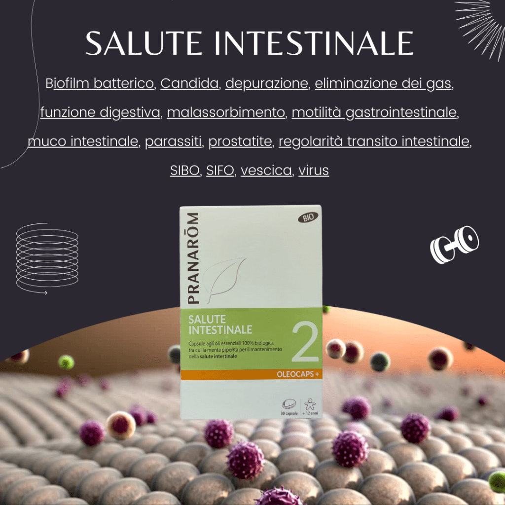 Vi presentiamo nel dettaglio condotti sulla nuova specialità Pranarom OLEOMAX Benessere intestinale che contiene oli essenziali ad attività antimicrobica.