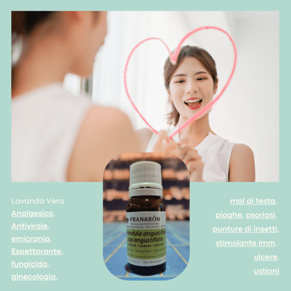 L’olio essenziale di Lavandula angustifolia (Labiatae) contiene soprattutto monoterpeni tra cui il piรน importante รจ l’acetato di linalile; poi abbiamo linalolo, ocimene, cineolo e canfora. ร un naturale antibiotico, antisettico, antidepressivo, sedativo e depurante.