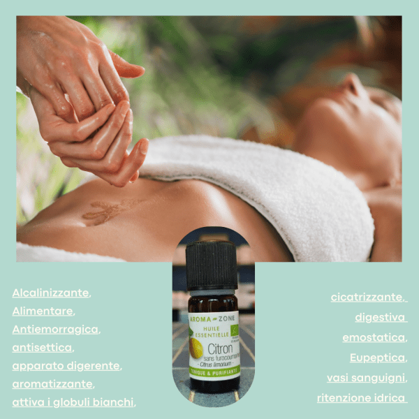 Ci vogliono circa 3.000 limoni per ottenere 1 kg di essenza. Le sue proprietร sono cosรฌ numerose e molteplici che viene utilizzato sistematicamente e con dei successi reali in una infinitร di affezioni. Lโessenza neutralizza il bacillo dโEberth e lo stafilococco in 5 minuti, il bacillo di Loeffer (difterite) in 20 minuti.