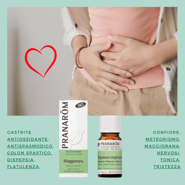 Le sue originali caratteristiche aromatiche si assommano alle proprietร di stimolare la secrezione dei succhi gastrici e risvegliare lโappetito; sul tratto intestinale la maggiorana agisce normalizzando i processi digestivi, bloccando le fermentazioni, attenuando le contrazioni dolorose.