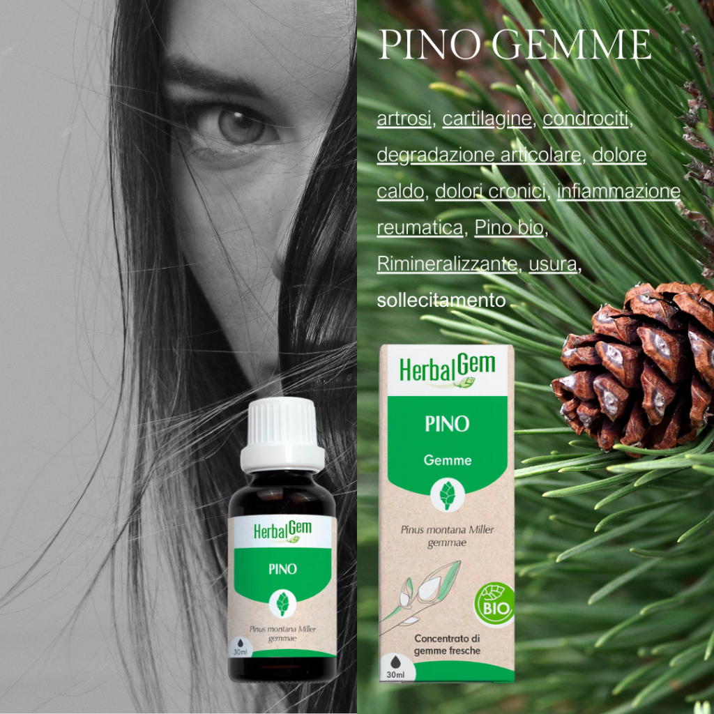 Un Eccellente remineralizzante, che preserva la cartilagine dall’usura, grazie alla sua azione stimolante a livello di condrociti. Allevia l’infiammazione reumatica e i dolori cronici artrosici. Il pino ha un’azione benefica sulla produzione delle cellule a livello articolare ed endoteliale insieme alla Centella Asiatica, microcircolo, cervello, presenza, e lotta contro la degradazione delle cartilagini.